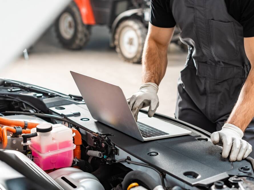 To proces identyfikacji usterek w samochodach za pomocą specjalistycznych narzędzi podłączanych do komputera pojazdu.